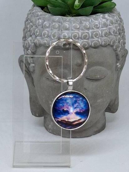 Porte-clés inspiré de la nature, représentant l'arbre de vie mystique dans un cabochon en verre avec de magnifiques détails.