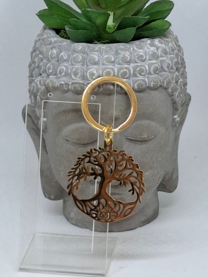 Porte-clés Arbre de Vie, design creux, en acier dorée.