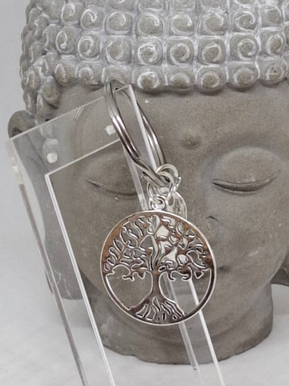 Porte-clés Arbre de Vie, design creux, en acier, élégant, ajouré + plaque acier inscrit "Thank you".