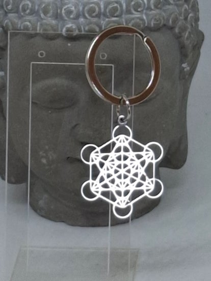 Porte-clés avec symbole de géométrie sacrée de l'Archange gardien, grand ange Métatron, fleur de vie.