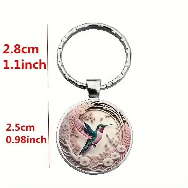 Porte-clés représentant un superbe colibri dans un cabochon en verre avec de magnifiques détails.