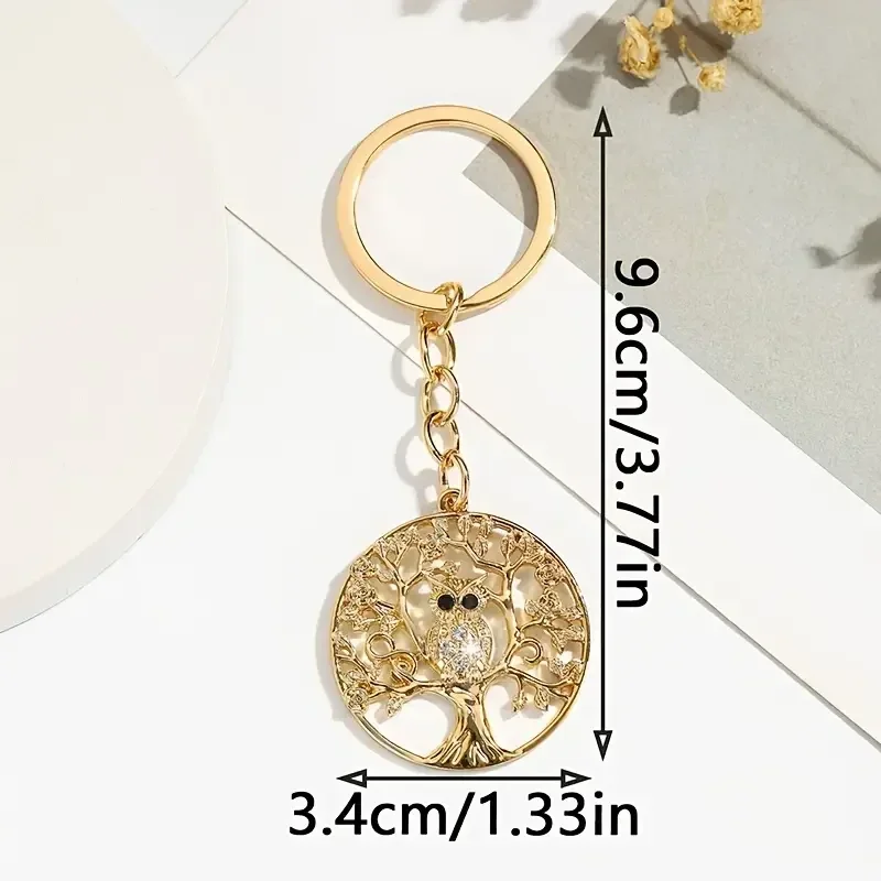 Porte-clés représentant une superbe chouette dans un arbre de vie avec de magnifiques détails.