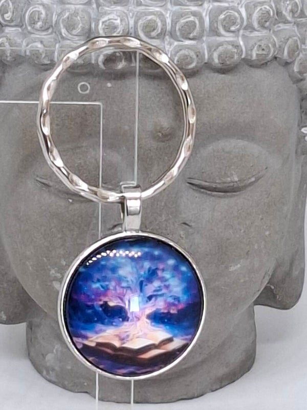 Porte-clés inspiré de la nature, représentant l'arbre de vie mystique dans un cabochon en verre avec de magnifiques détails.