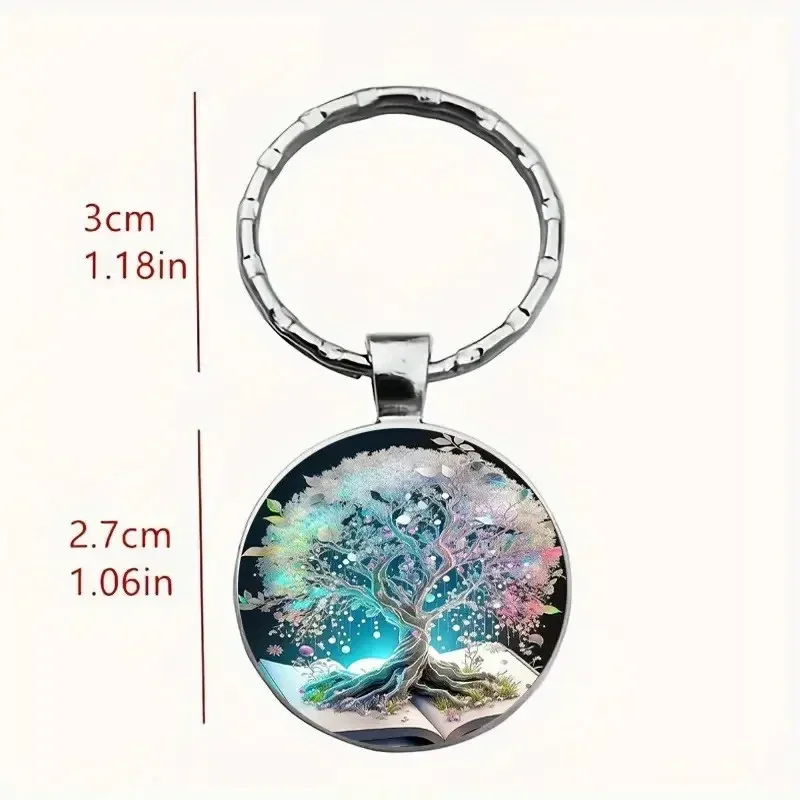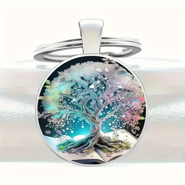 Porte-clés inspiré de la nature, représentant l'arbre de vie avec un design de livre dans un cabochon en verre avec de magnifiques détails.