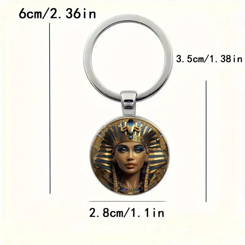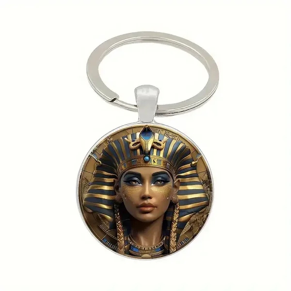 Porte-clés représentant la Reine d'Egypte dans un cabochon en verre.