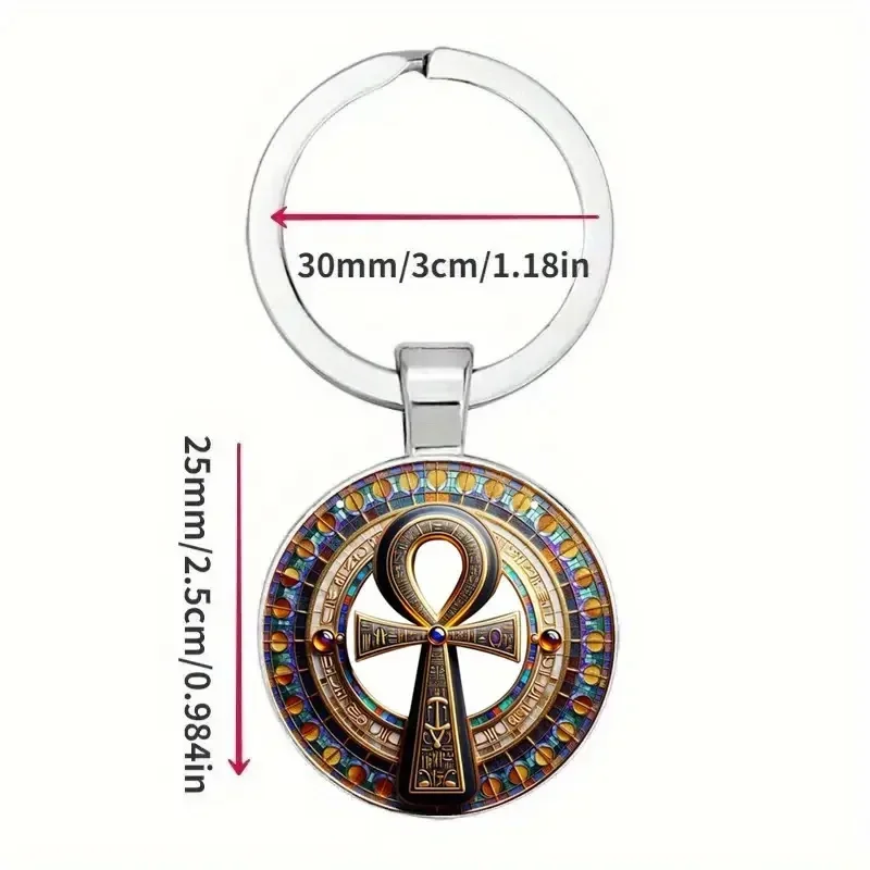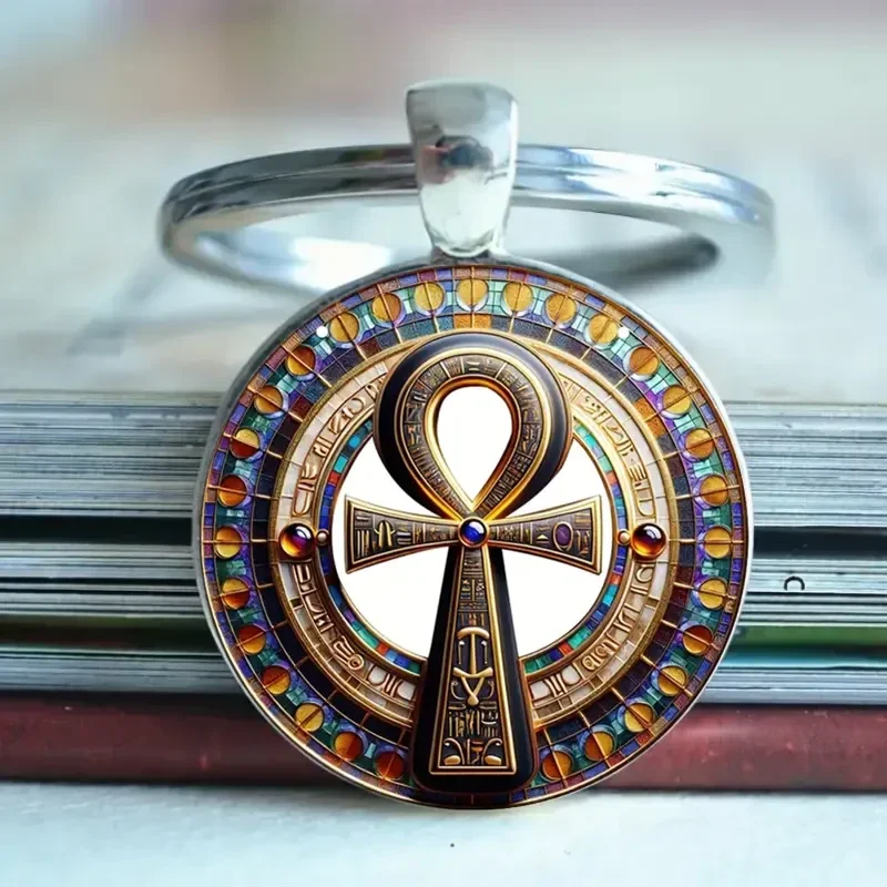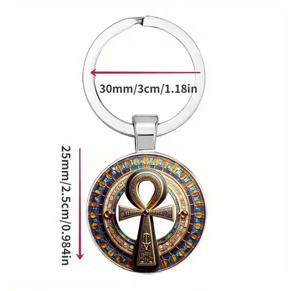 Porte-clés représentant la Croix Ankh, appelé également Clé de vie, dans un cabochon en verre.