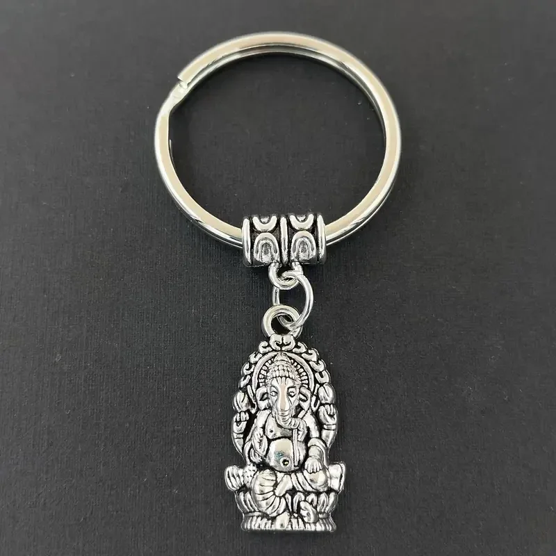 Porte-clés inspiré de l'Hindouisme, représentant Ganesha ou appelé aussi Ganesh, à la tête d'éléphant, Dieu Hindou patron de la richesse et l'intelligence.