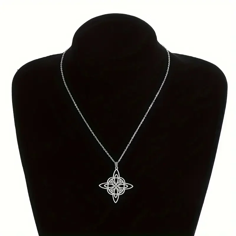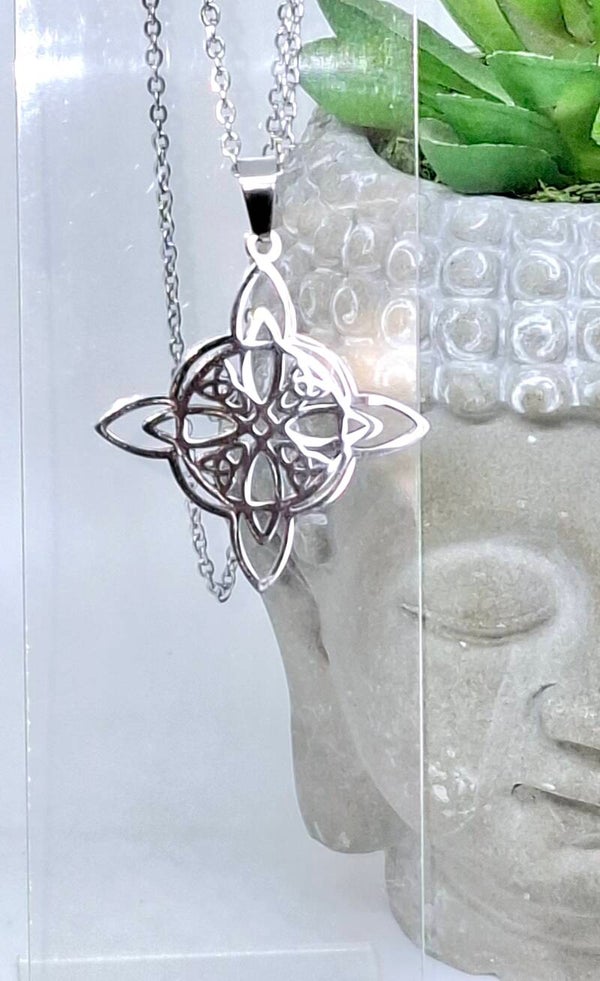 Superbe collier noeud de sorcière en acier argenté, Magique celtique, amulette.