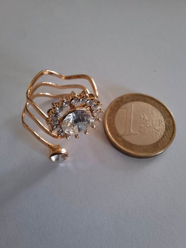 Superbe bague fantaisie couleur dorée en spirale avec strass.