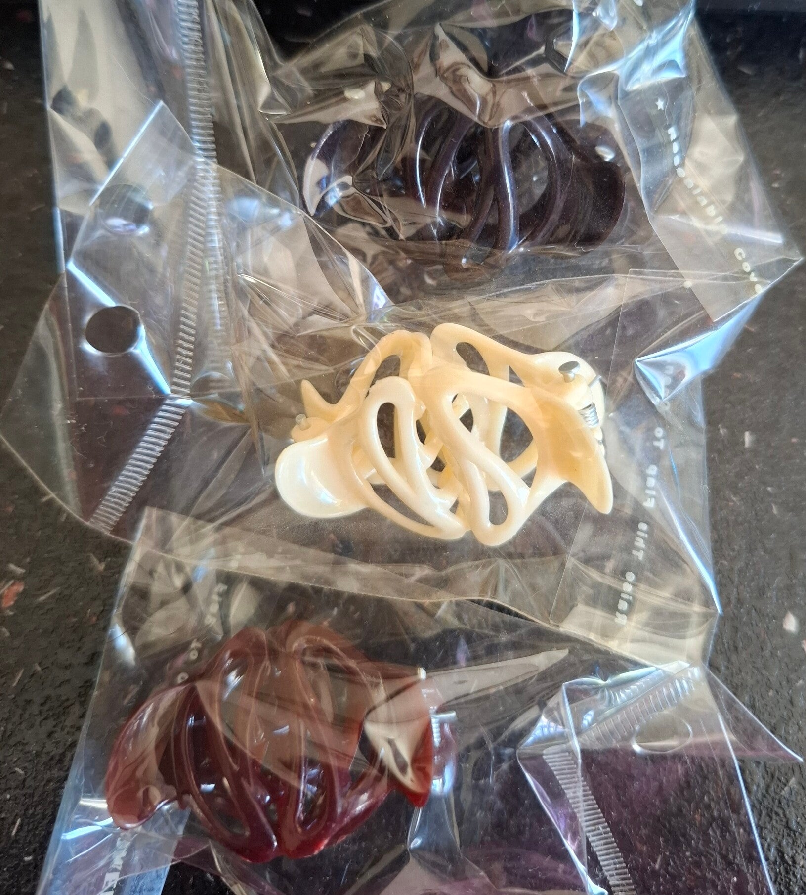 Lot de 6 petites pinces à cheveux design beige, noire et bordeaux